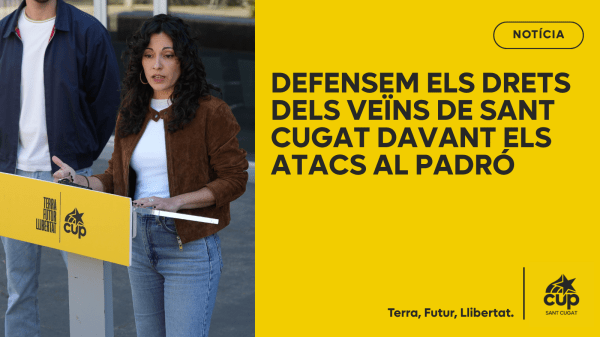 La CUP Sant Cugat mostrem el nostre rebuig frontal a la nova instrucció aprovada pel govern municipal que endureix els criteris d’empadronament. Aquesta mesura s’emmarca en una estratègia de “tolerància zero” contra el suposat frau, però implica en la pràctica nous obstacles administratius per a l’accés a un dret fonamental. Volem recordar que el padró... Continue Reading →