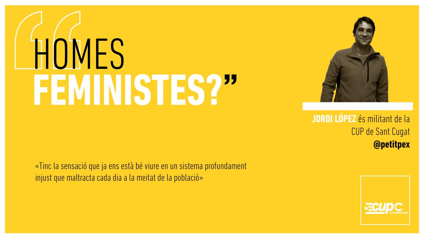 Òbviament les dones són les que han de liderar la lluita feminista, no serà gràcies als homes que elles aconsegueixin alliberar-se d’aquesta xacra que és el masclisme i el patriarcat, però també és cert, que els homes tenim el deure i l’obligació de començar a canviar les nostres actituds i renunciar als privilegis que tenim establerts si volem avançar cap a una societat més justa, igualitària, de totes i per totes.