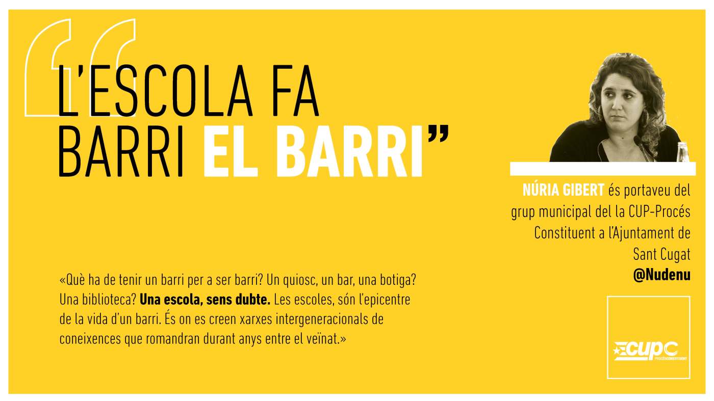 Què ha de tenir un barri per a ser barri? Un quiosc, un bar, una botiga? Una biblioteca? Una escola, sens dubte. Les escoles, són l’epicentre de la vida d’un barri. És on es creen xarxes intergeneracionals de coneixences que romandran durant anys entre el veïnat. Les escoles serveixen d’equipament principal, són la referència i tenen un paper fonamental en la inclusió i la cohesió social del barri. Les escoles són ‘think tanks’ de centenars de petits pensadors que s’interrelacionen, coneixen i estimen el barri i pensen maneres d’incidir-hi, en el present i en el futur.. Les escoles ajuden a fer tribu.