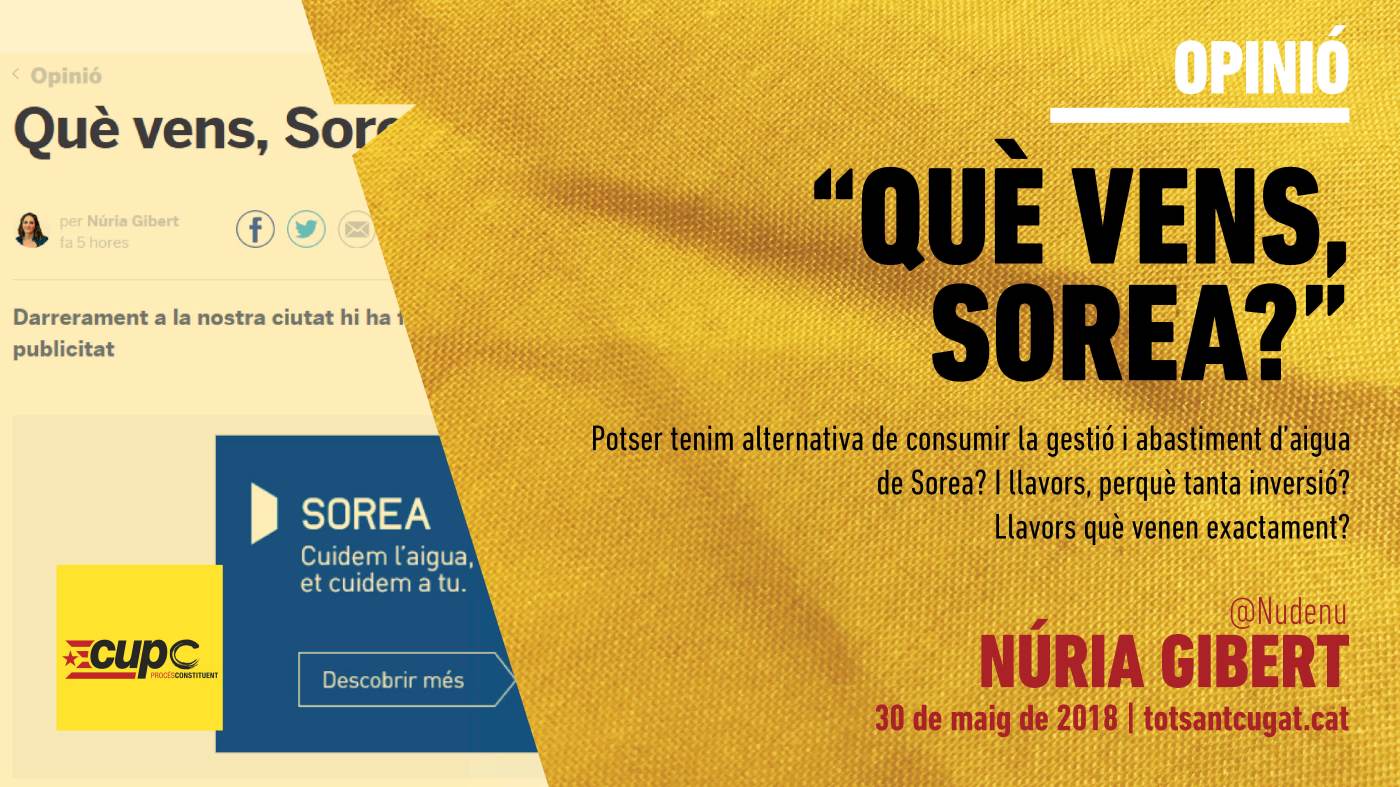 L’externalització de determinats serveis, ha consolidat la percepció que tot es pot vendre i comprar, fins i tot serveis bàsics per la vida, com l’aigua. No puc fer res més que comprar-te l’aigua Sorea, però sí que puc ser crítica amb la gestió, ni que facis campanyes que em cobraràs a la factura, per a convèncer-me del contrari.