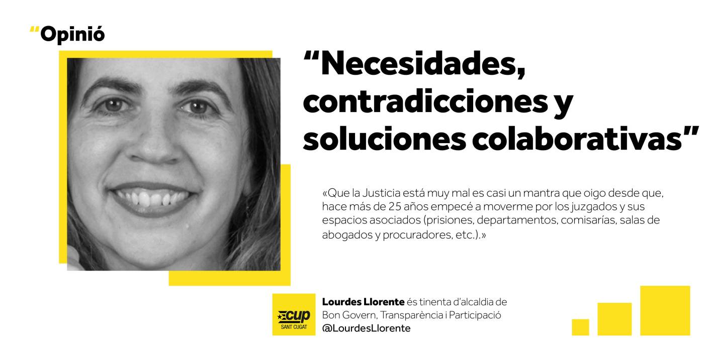 Sin embargo, la colaboración y cooperación ayuda muchas veces a resolver contradicciones. Si los Ayuntamientos implicados buscamos un espacio cercano a los núcleos de ambas ciudades, que permita construir un espacio moderno, que pueda albergar todos los juzgados que necesitamos, y con previsión a los que podamos necesitar, y esté cercano a los FGC y dotado de servicio de transporte público adecuado (Castellbisbal también existe), quizá podamos resolver todos los problemas, sin ocasionar duplicidad en los gastos y servicios comunes, y dar respuesta de una vez a una reivindicación histórica de nuestra ciudad, y a una necesidad urgente de dignificación de los espacios donde se imparte justicia, y donde muchísimos trabajadores de la administración sufren a diario condiciones de trabajo muy precarias.