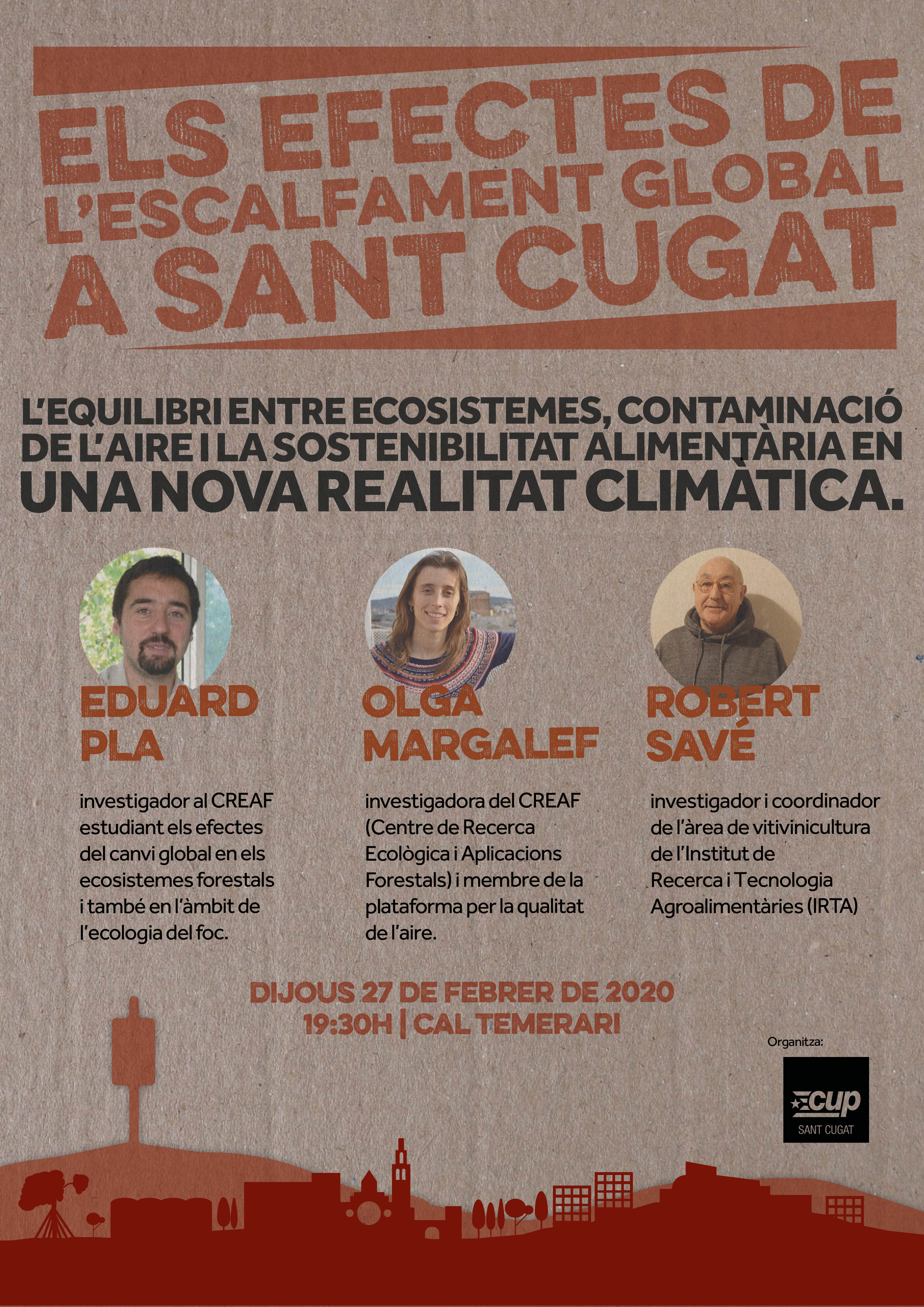 El proper 27 de febrer la CUP Sant Cugat organitza una xerrada per veure les afectacions a Sant Cugat de l’escalfament global.