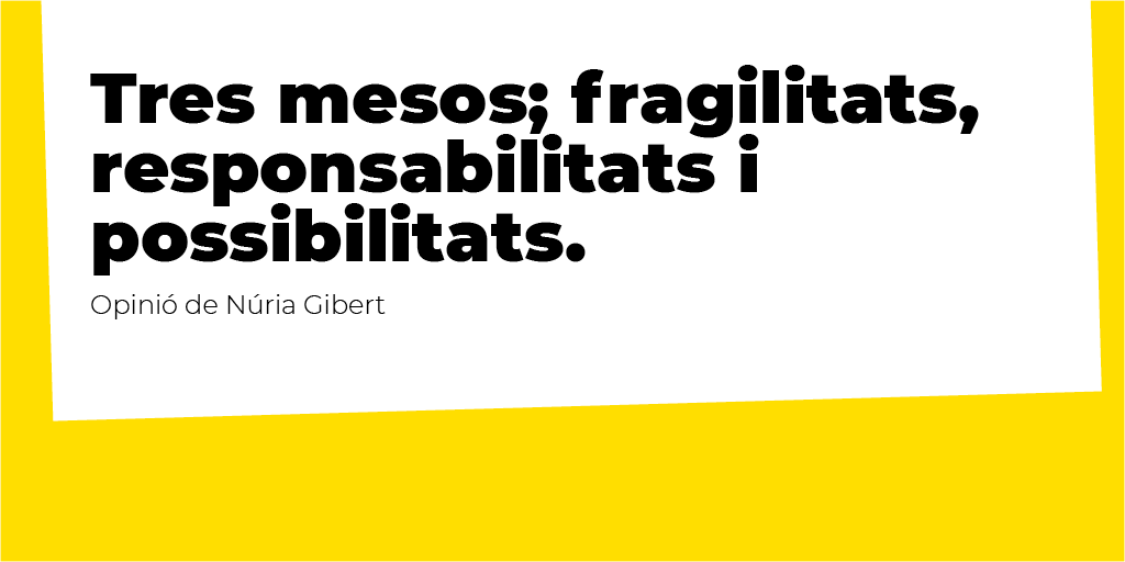 Tres mesos. Es diu ràpid però ha estat i seguirà essent feixuc i estrany. Tres mesos per a un desvetllament d’una normalitat que ara se’ns presenta llunyana , aliena i també disfuncional. Perquè aquella normalitat, que s’ha quedat amb el pap ple de projectes i coses a mig fer, també era una matèria primera de desigualtats que ha posat de manifest com de fràgils som avui.