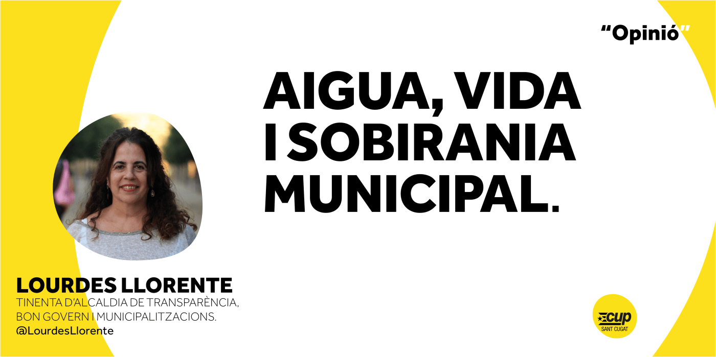 Quan parlem de subministrament de l’aigua, estem parlant precisament de garantir l’aigua a totes les famílies, tant per les que puguin pagar-la i les que no; estem parlant de la qualitat de l’aigua, d’aquesta aigua que a Sant Cugat cada vegada més es pot beure menys; del cost que té, actualment un dels més alts de Catalunya i de factures “errònies” enviades i cobrades massivament i qui sap quan i a qui es retornarà l’excés; de les prioritats en les inversions, on s’inverteix, quant, quan, per què. En resum, estem parlant de garantir que un bé essencial per a la vida, sense el qual no podem sobreviure, estigui protegit i es gestioni de la manera més eficient, més transparent i amb prioritats sotmeses a el control democràtic i a l’observació i participació ciutadana.
