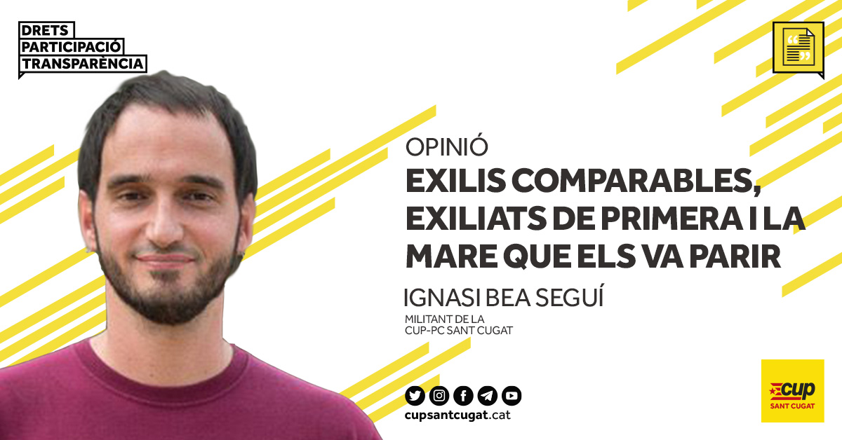 Parlant amb una amiga sobre la pregunta i la resposta de Pablo Iglesias al tema dels exilis, em fa adonar d’una cosa important que em duu a afirmar, rotundament, que l’exili de Puigdemont és totalment comparable amb l’exili republicà.