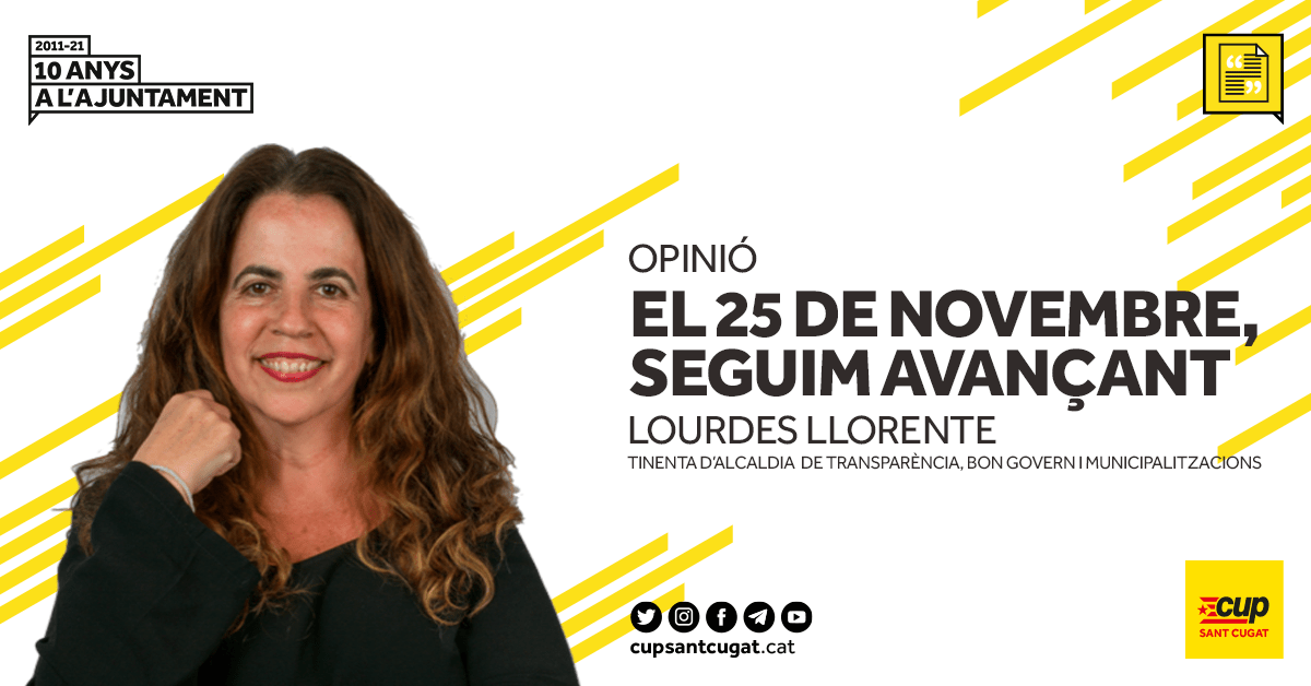 Ara, però, recollim els fruits de molts anys de feina en clau feminista, i per això és possible veure una tinenta d’alcaldia de la CUP al capdavant de l’àmbit d’Igualtat treballant per aconseguir un Sant Cugat per a tothom, però també per a les dones.