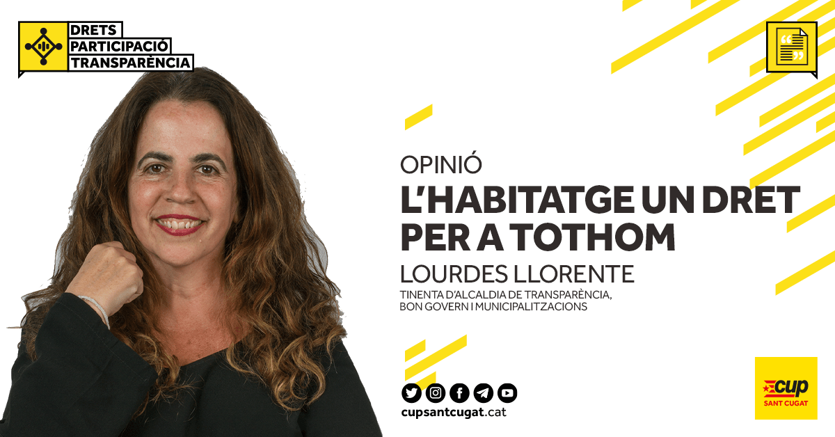 Aquesta jornada es celebra en el marc de la campanya “L’habitatge, un dret per a tothom” que hem iniciat recentment, i en què volem parlar dels principals problemes de la ciutat pel que fa a la vivenda, i de la necessitat d’un nou model per a Sant Cugat, que el faci més inclusiu i sostenible.