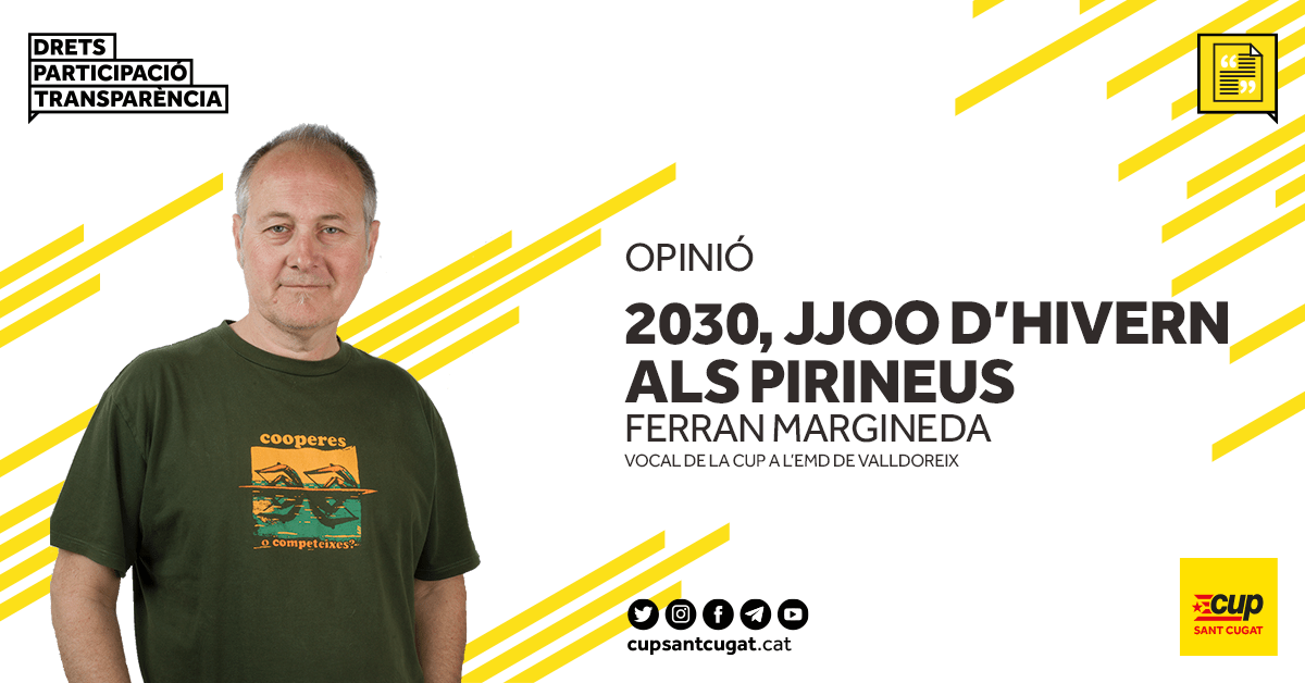 Sensibles i preocupats davant d’un model de negoci, el turisme de la neu, que ha pres el mateix biaix que el del turisme massificat de comarques costaneres, veiem com les comarques pirinenques i prepirinenques s’han hagut d’organitzar en la plataforma Stop JJOO per oposar-se a la piconadora ambiental i social que pot representar l’organització d’uns jocs olímpics d’hivern al nostre territori.