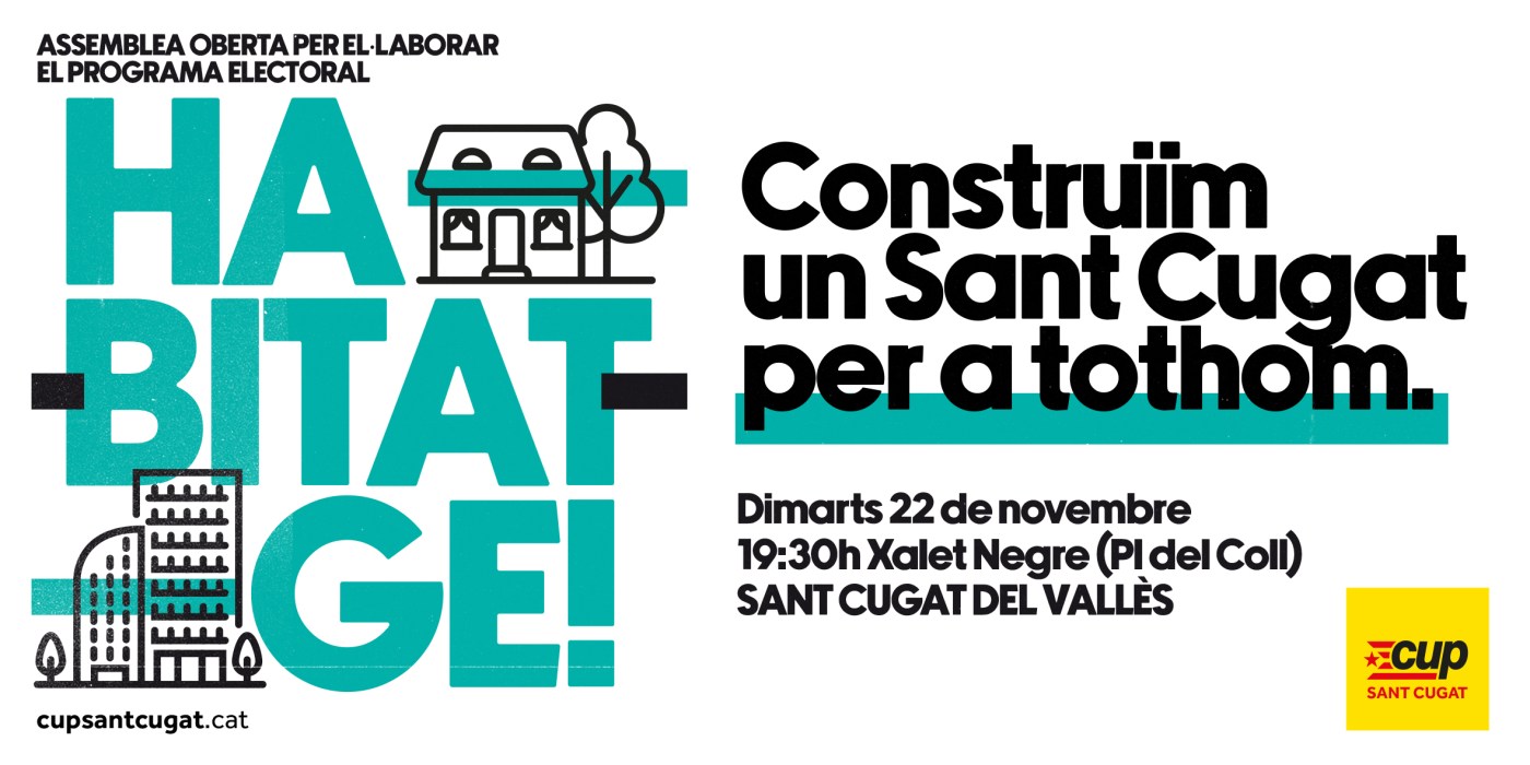 La primera sessió serà ben aviat. El dimarts 22 de novembre, ens veiem a les 19:30 al Xalet Negre per parlar sobre que podem fer per resoldre la problemàtica de l’habitatge, coneguda per tothom a Sant Cugat i que segons L’últim Baròmetre Inclusiu afecta la meitat de la població, que té problemes per pagar l’habitatge a finals de mes.