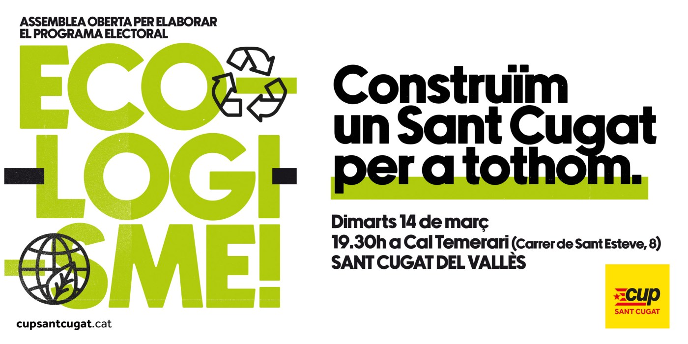 Per això, el dimarts 14 de març ens trobarem per parlar de l’aigua, de quina gestió fem dels recursos energètics i de com construïm una sobirania alimentària essencial per al futur. Us esperem per sentir la vostra opinió i poder recollir les vostres aportacions.