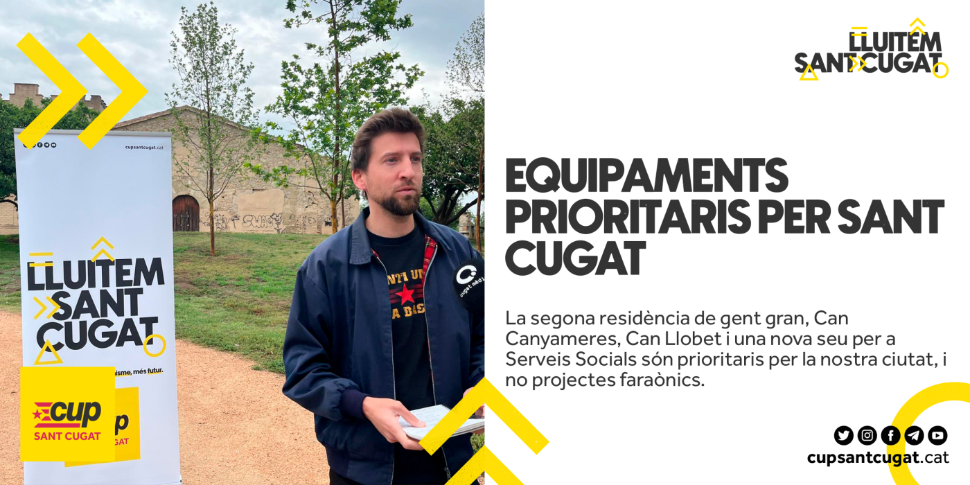 El candidat a l’alcaldia Marco Simarro, ha exposat el que considera que són el equipaments prioritaris a desenvolupar durant el proper mandat per la CUP Sant Cugat, entre els quals es troben la segona residència, Can Canyameres o una nova seu per a serveis socials.