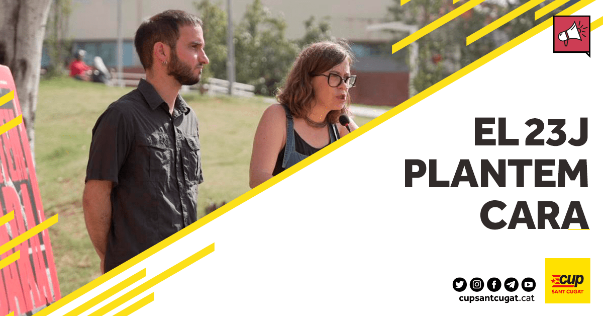 La campanya de la CUP a les eleccions espanyoles ha passat aquest matí per Sant Cugat. El número 3 per Barcelona i ex-regidor de Sant Cugat Ignasi Bea, i la número 32 i diputada al Parlament de Catalunya Eulàlia Reguant han exposat el nostre plantejament en aquests comicis.