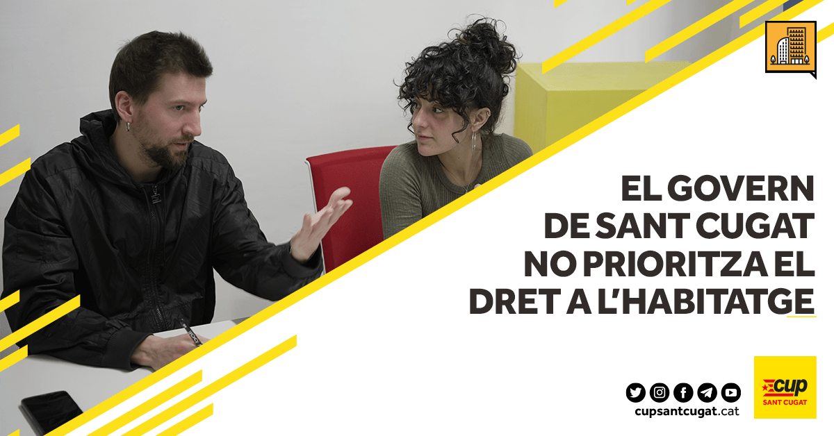 Resulta molt preocupant que l’habitatge no estigui entre les prioritats del govern de Sant Cugat, quan el preu mitjà del lloguer a la ciutat ha arribat al màxim històric de 1.500€. A més, des de l’inici del mandat se succeeixen els projectes d’habitatge que acaben quedant al calaix, com el Ragull Centre, Ca n’Ametller o la previsió de pisos de protecció oficial que s’havia de construir aquest mandat, que també s’ha reduït.