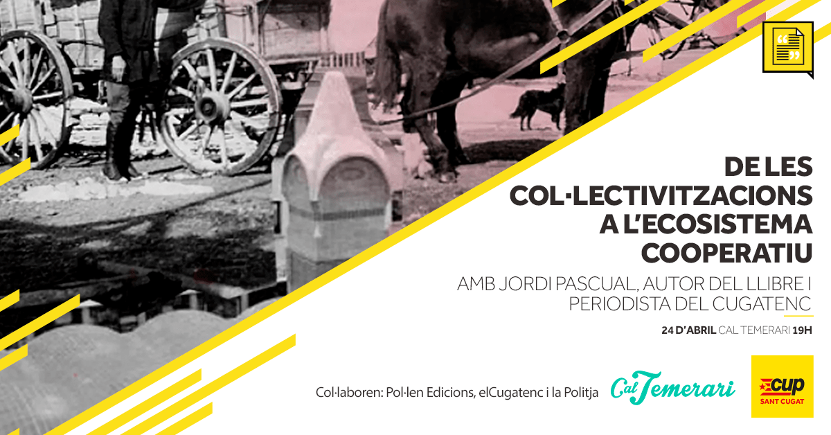 Una presentació que organitzem amb Cal Temerari, llar de cooperatives i diverses iniciatives de l’Economia Social i Solidària, i on comptarem amb la veu de Jordi Pascual, autor del llibre i periodista de El Cugatenc. Us convidem a tots i totes a venir, i a participar amb les vostres preguntes i aportacions.