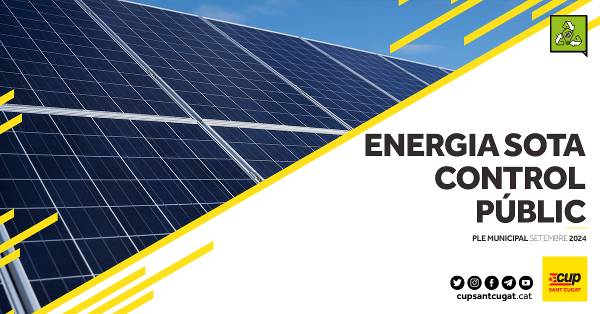 La CUP Sant Cugat comencem el curs polític amb la primera moció, que neix amb la voluntat d’instal·lar plaques fotovoltaiques a l’AP7 al seu pas per Sant Cugat. La moció es basa en un informe tècnic realitzat pels geògrafs Sergi Saladié Gil i Lluís Salvat García, segons el qual la instal·lació de plaques fotovoltaiques a l’AP7 a Sant Cugat podria cobrir fins al 8,7% del consum anual de la ciutat. Per aconseguir-ho la moció insta la Generalitat a demanar a l’estat espanyol la cessió dels terrenys de l’AP7 al seu pas per Sant Cugat del Vallès, i dur a terme la instal·lació de les plaques fotovoltaiques.