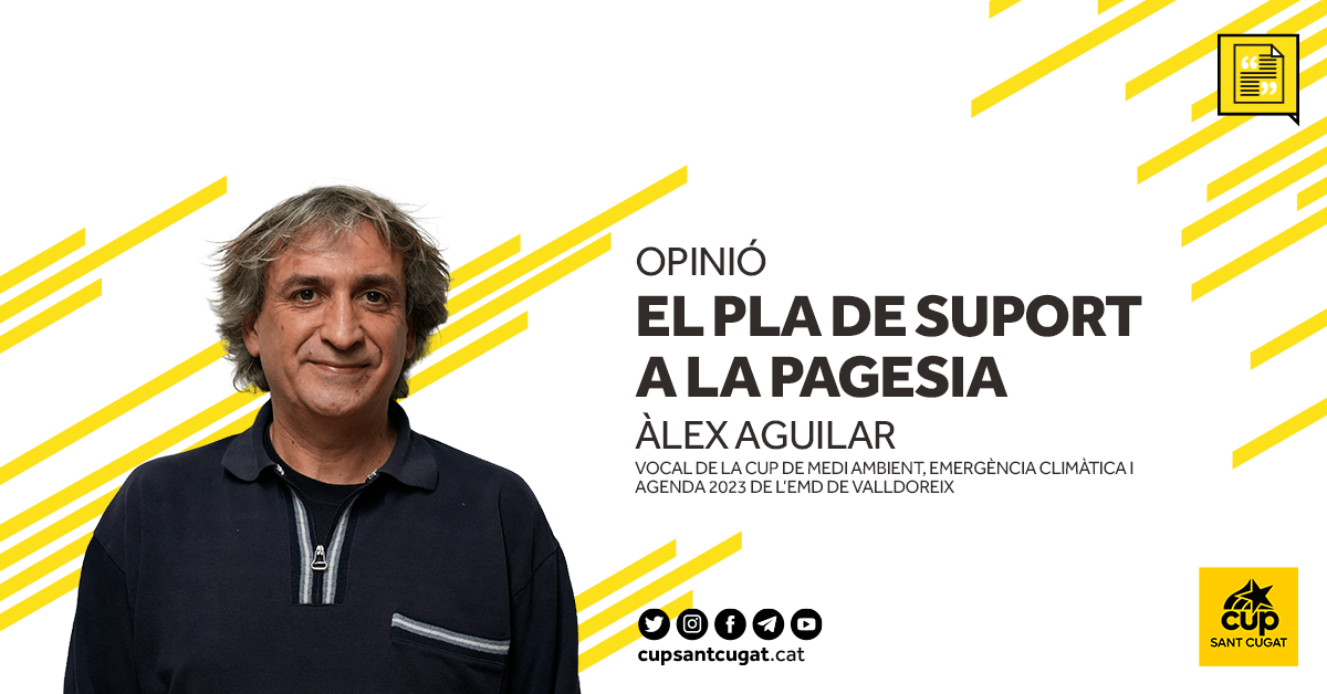 Si res no es torça, veurem aprovat per fi al ple de Sant Cugat el tan necessari Pla de suport a la pagesia, amb una dotació pressupostària que li ha de permetre començar a caminar. Aquest instrument, llargament reivindicat per la pagesia i les entitats del territori, ha de donar resposta a les necessitats immediates del sector i traçar una estratègia compartida i transformadora.