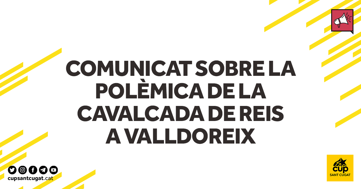 La CUP anuncia que ha demanat explicacions als socis de govern a l’EMD per la polèmica viscuda a la cavalcada de Valldoreix del passat 5 de gener, i assegura que l’EMD ja està treballant perquè aquesta situació no es repeteixi en el futur.