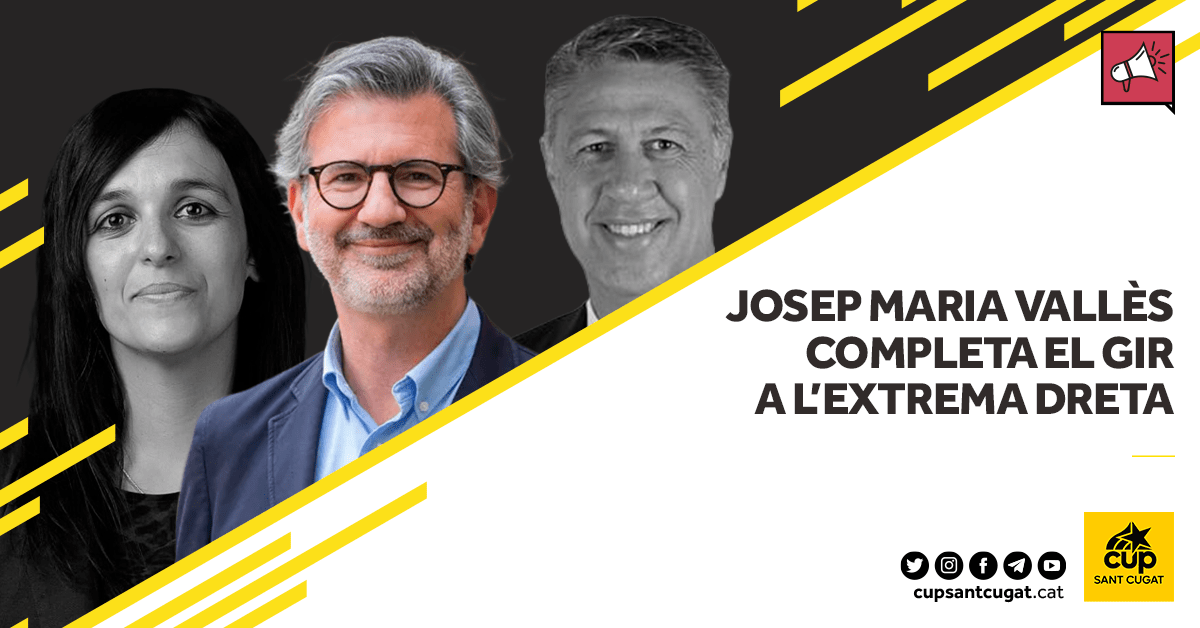 La CUP concloem que cada cop té menys sentit tenir cap mena de relació amb aquest govern i enviem un missatge a ERC: si no es desmarquen immediatament d’aquestes declaracions, seran còmplices d’aquest gir cap a l’extrema dreta de l’ajuntament de Sant Cugat.