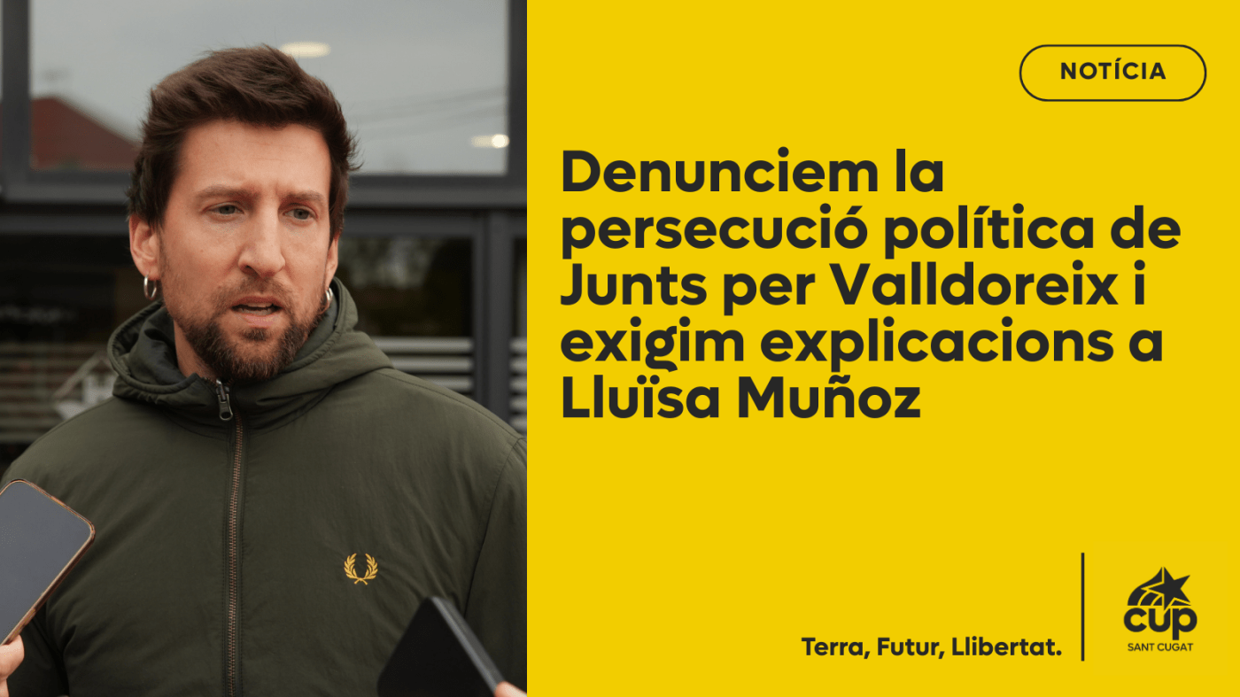 Avui aquesta persecució ha travessat una línia vermella després que Junts per Valldoreix hagi presentat una moció que reitera aquestes falses acusacions i anuncia que Muñoz ha interposat una denúncia a la policia contra Àlex Aguilar i la CUP.