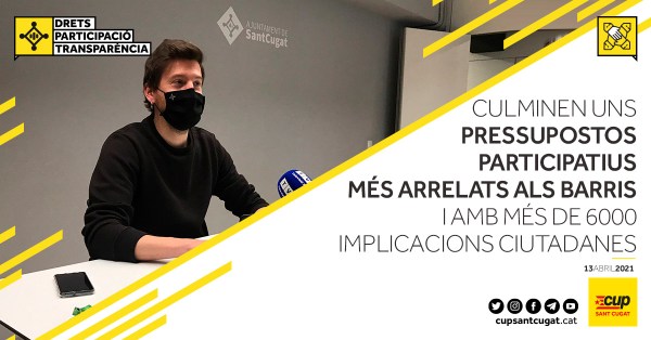 Aquest passat dilluns 22 de març de 2021, el Ple de l’Ajuntament de Sant Cugat va aprovar el nou pressupost per a l’any 2021. Un pressupost amb un increment del total del 2,3% on s’incrementen en més de 3M d’euros els àmbits de Drets Socials, Promoció Econòmica, Mobilitat, Tecnologia i Innovació i Esports. Un pressupost... Continue Reading →