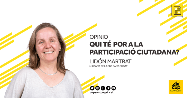 Sembla que aquest Govern Municipal de Sant Cugat té por a la participació ciutadana. Sembla que ja va els va bé aquest sistema de democràcia representativa en què la ciutadania delega la sobirania en representants escollits mitjançant eleccions periòdiques i competitives per sufragi universal, i aquests van fent sense haver de rendir comptes formalment fins... Continue Reading →