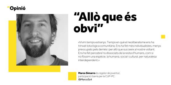«Enfront del COVID-19, defensem el bé comú!» és l'opinió de Marco Simarro