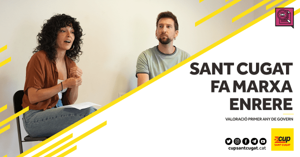 Després d’un any de mandat, la CUP Sant Cugat volem fer una primera valoració amb calma sobre el govern de Junts i ERC, i la valoració que fem és que avui dia Sant Cugat fa marxa enrere i és una ciutat cada cop més desigual, on tornen els mals costums de la vella política. Després... Continue Reading →