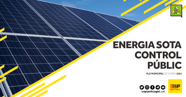La CUP Sant Cugat comencem el curs polític amb la primera moció, que neix amb la voluntat d'instal·lar plaques fotovoltaiques a l'AP7 al seu pas per Sant Cugat. La moció es basa en un informe tècnic realitzat pels geògrafs Sergi Saladié Gil i Lluís Salvat García, segons el qual la instal·lació de plaques fotovoltaiques a l’AP7... Continue Reading →